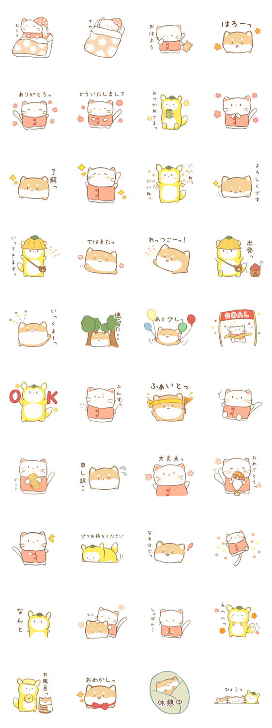 大吾郎(犬)とにゃんこ(ねこ)とこんちゃん(きつね)のスタンプです。日々使えるスタンプ。