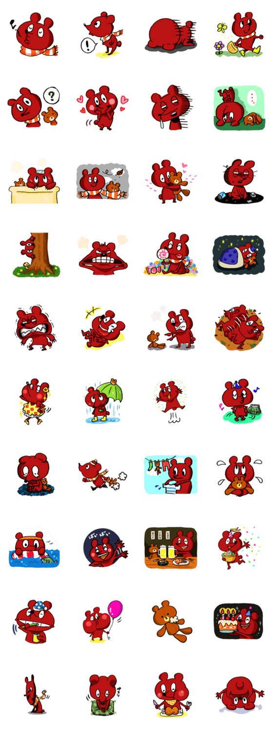 友達はぬいぐるみのクマだけ、でも毎日楽しいよ。そんな赤いくまの日常をスタンプにしました。