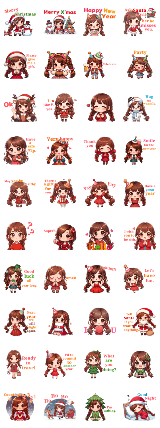 Little girl pigtails:X'mas&New… -LINEスタンプマニア