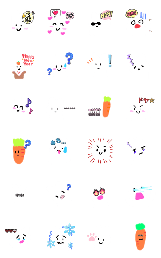 もこもこうさぎLINEスタンプ第二弾です。白以外の背景で使うことをおすすめします。(見えにくいので)にんじんちゃん初登場!新キャラどんどん追加予定!