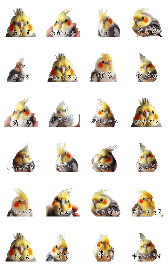可愛いオカメインコのスタンプ。鳥・カワイイ・かわいい・ふだん・普段・つかいやすい・使いやすい・日常・おしゃれ・オシャレ・若者・流行・はやり・最近・人気・トレンド