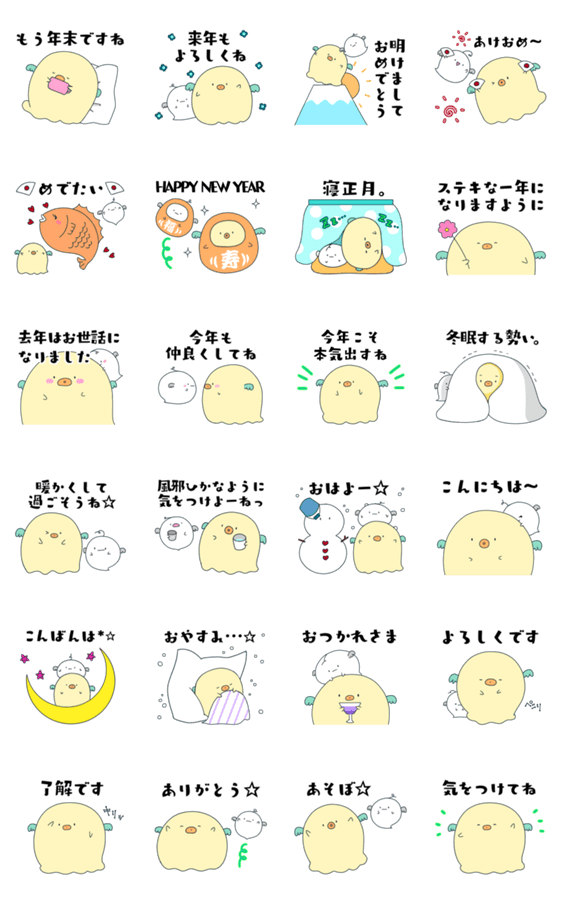 年末年始、あけおめ、ことよろ、めでたい、だるま、寝正月、などなど、、、 冬向けの日常スタンプもあるからとっても便利だよ!