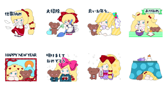 天使の女の子とクマのあけおめスタンプ再販 -LINEスタンプマニア