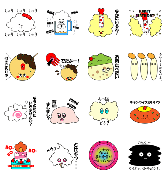 癖のある食べ物達が活躍するかわいいスタンプです。