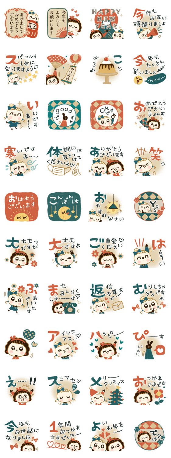 ※こちらは再販スタンプです!重複購入にはお気をつけください。レトロカラーがかわいい♡年末年始に使えるフレーズ沢山のスタンプです♪