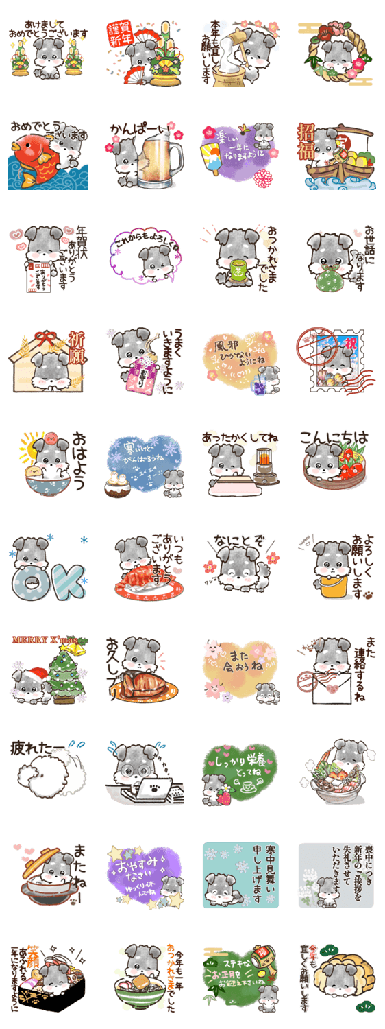 キュートな愛犬★シュナウザーの優しくて使いやすい年末年始スタンプを揃えました♪着物/毎日/大人/日常/気遣い/敬語/食べ物/正月/挨拶/年中/ペット/挨拶/敬語/Bnasuko
