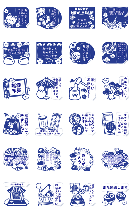 | スタンプ説明 | シンプルで使いやすい年賀スタンプを使いました。あけましておめでとう,お正月,年末年始,新年,あけおめ,年越し,大晦日,謹賀新年,年賀状,様々な場面でのご挨拶に使ってね♬ 現在この商品は一部のスマートフォン版LINE 10.3.0以上のトークルームでのみ使用できます。動作環境の最新情報はヘルプをご確認ください。 |