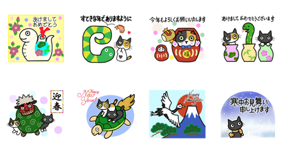 かわいい三毛猫とくつした猫の年賀スタンプ -LINEスタンプマニア