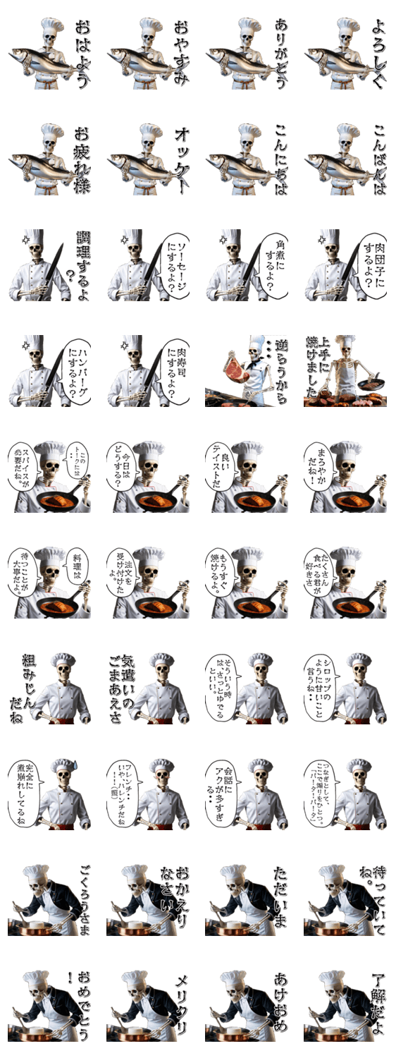 骸骨/白骨/アンデッド/ホラー/料理/AI/ギャグ/ガイコツ/骨/ダジャレ/コック/シェフ/スペース/ネタ/人骨/親父ギャグ/うざい/煽り/面白い/肉/挨拶/日常/スケルトン/駄洒落