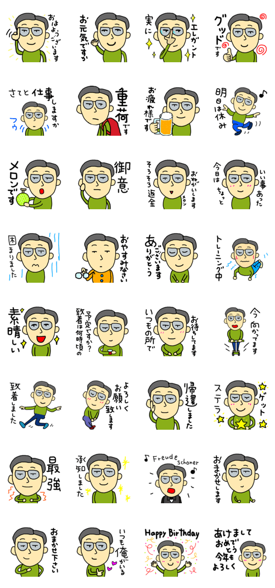 おじさんの愛称はメロン。メロンおじさんの日常会話スタンプ。