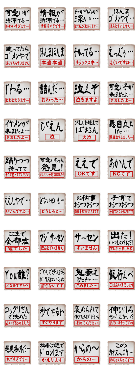 筆文字のスタンプです、第3弾、シンプルなので仕事で使いやすいです、下の部分には文章の読み方や意訳、丁寧な言い回しなどが書いてあります