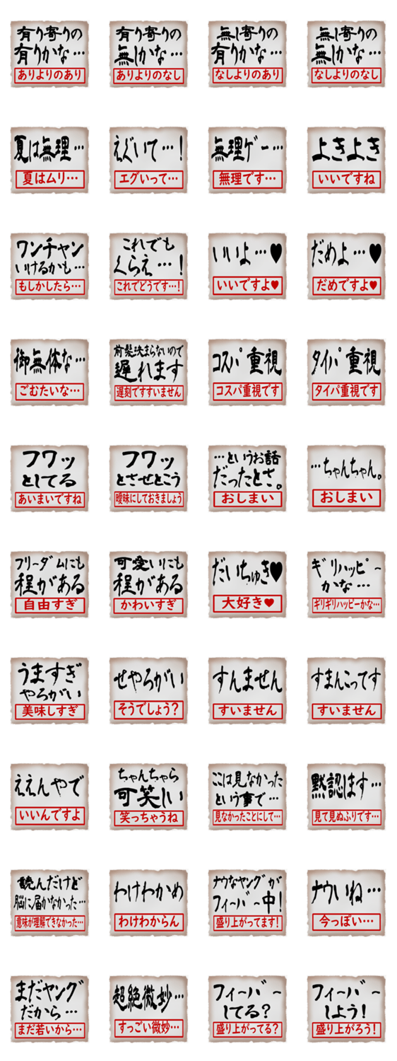 筆文字のスタンプです、第4弾、シンプルなので仕事で使いやすいです、下の部分には文章の読み方や意訳、丁寧な言い回しなどが書いてあります