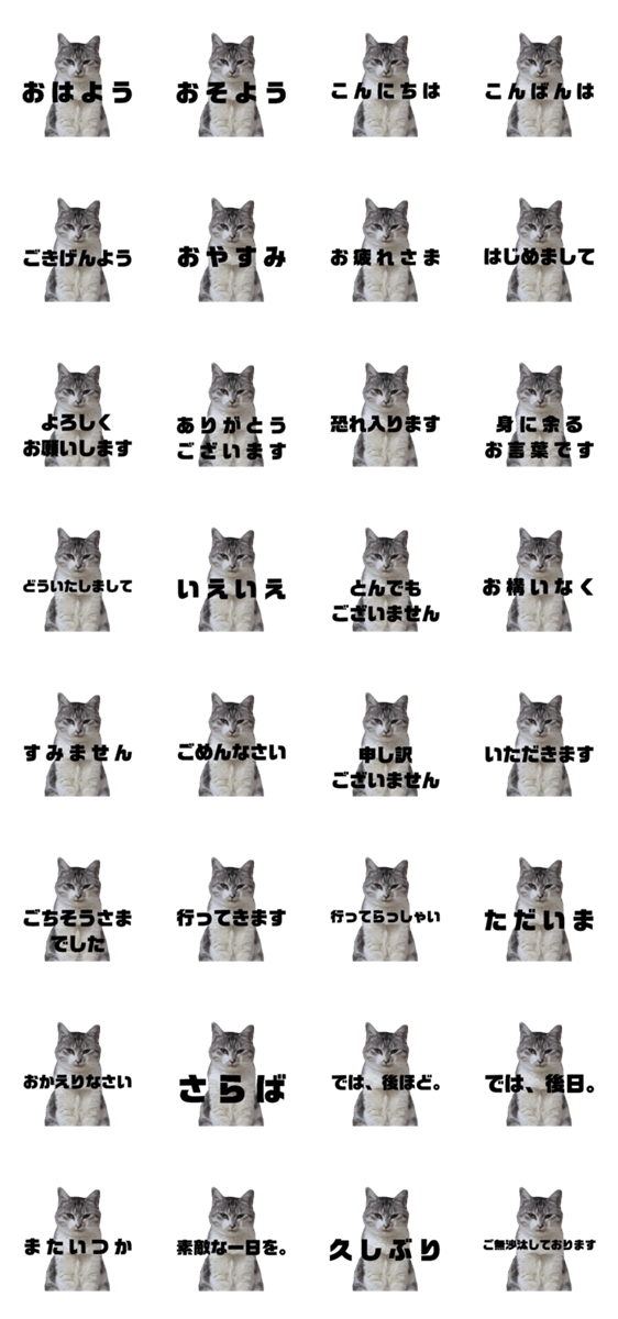 イナさんの圧強めの挨拶。リアル猫の写真で作った実写版スタンプ。