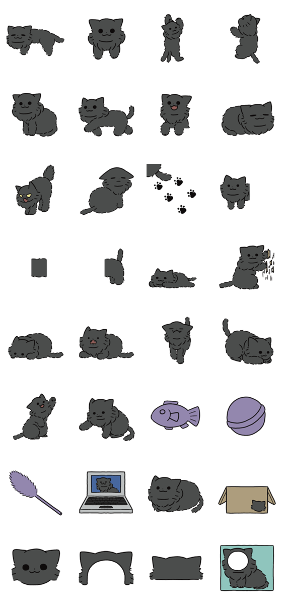 長毛黒にゃんこ(スタンプアレンジ用) -LINEスタンプマニア