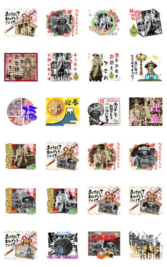 迫力満点。くく村のええが 贈る 勇敢さに溢れた武士 中村為之丞 中村為綱の実写スタンプ。行く年 来る年編。 チャットに臨場感を!