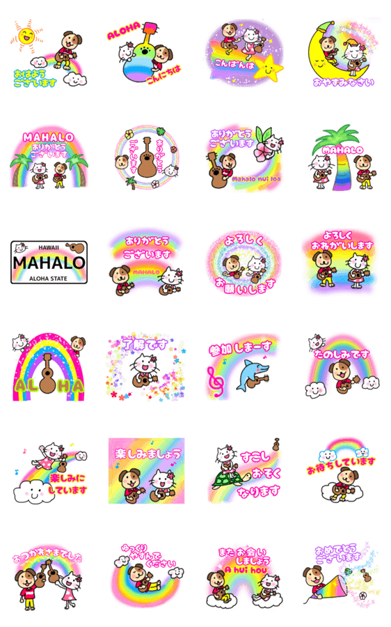 見るだけで幸せな気持ちになる虹とウクレレを弾くワンコ&ニャンコです。楽しい毎日にお役立ていただけたら嬉しいです。