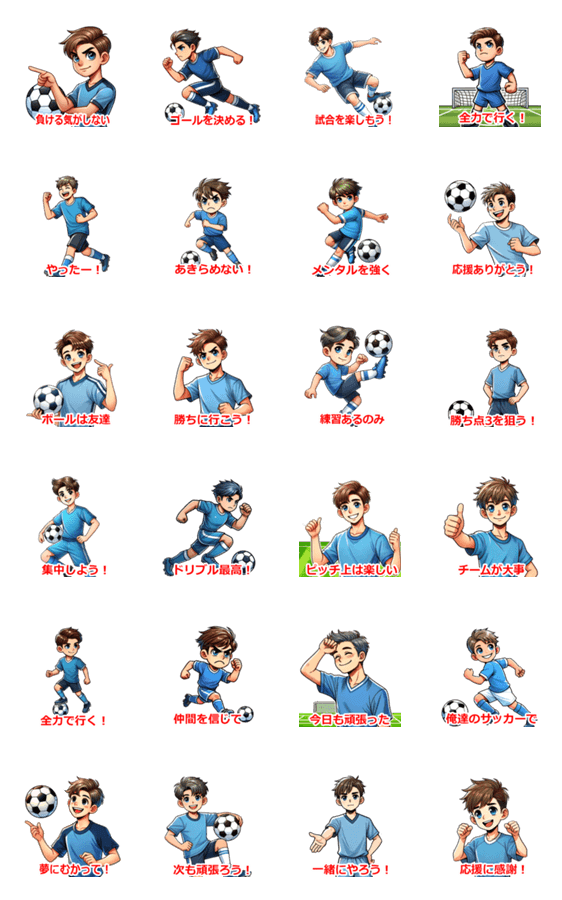 | スタンプ説明 | サッカーをしている方が使いそうな言葉をつかったラインスタンプです |