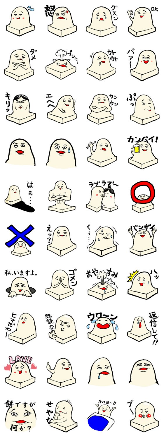 餅をモチーフにした「もちお君」のスタンプです。きもいけど可愛いもちお君があなたの気持ちを代弁してくれます。
