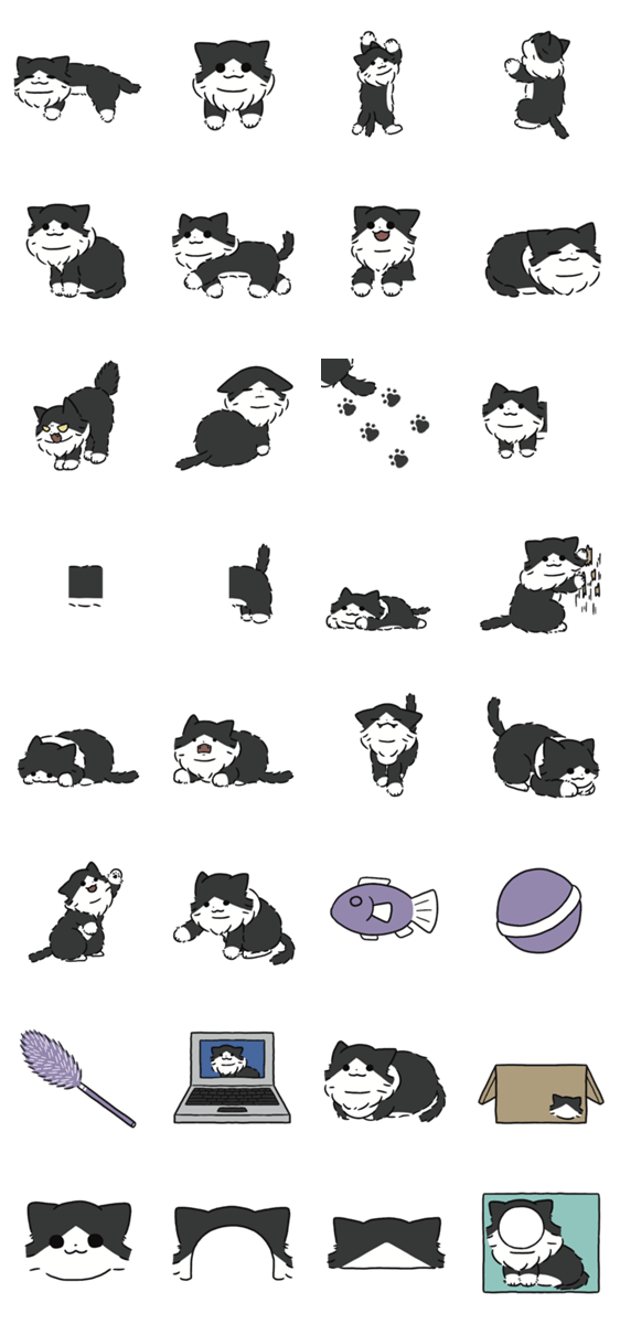 長毛黒白にゃんこ(スタンプアレンジ用) -LINEスタンプマニア