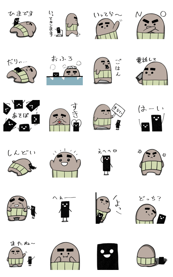 黒糖の餅の妖精黒餅太郎と相棒のり太の日常使いできるスタンプ第二弾です。