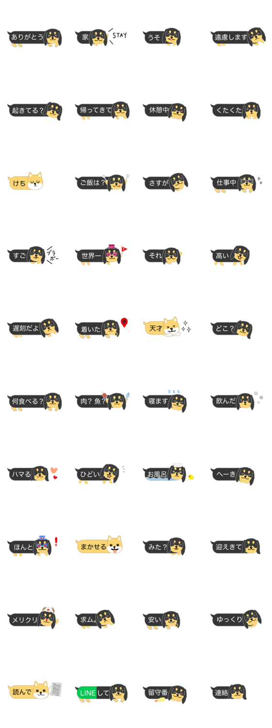 家族用ふきだしのダックスのスタンプ。ときどき柴犬も。
