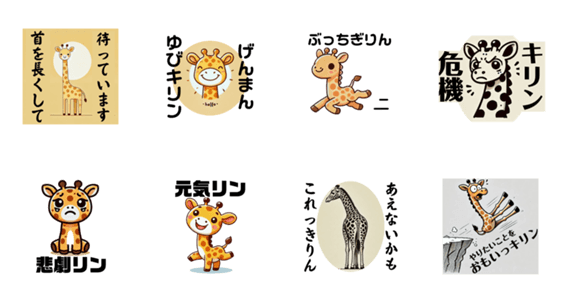 あっという間に笑顔に!かわいいキリン達が、いろんなシーンで使えて、だんぜん面白い!いつでもどこでも、きっとお気に入りのスタンプに!
