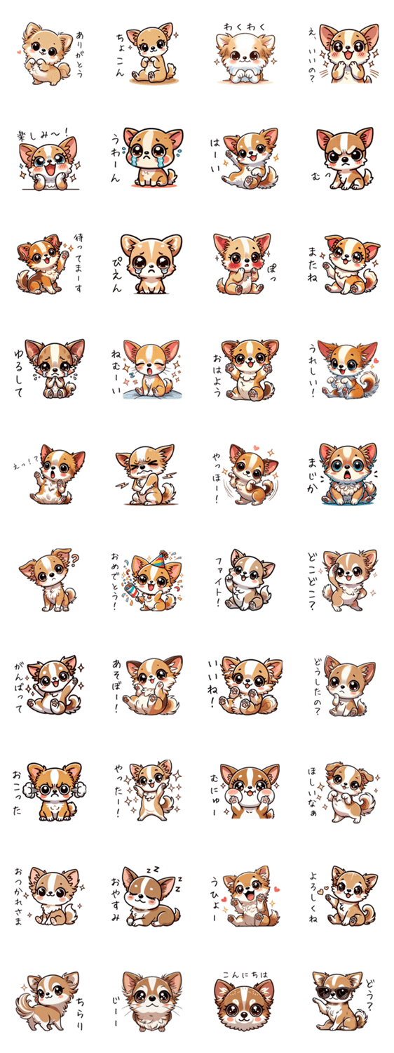 | スタンプ説明 | チワワ/犬/ちわわ/日常使い/小型犬/ペット/癒し/動物/小動物/可愛い/オシャレ/わんちゃん/ワンちゃん/愛犬/使いやすい |