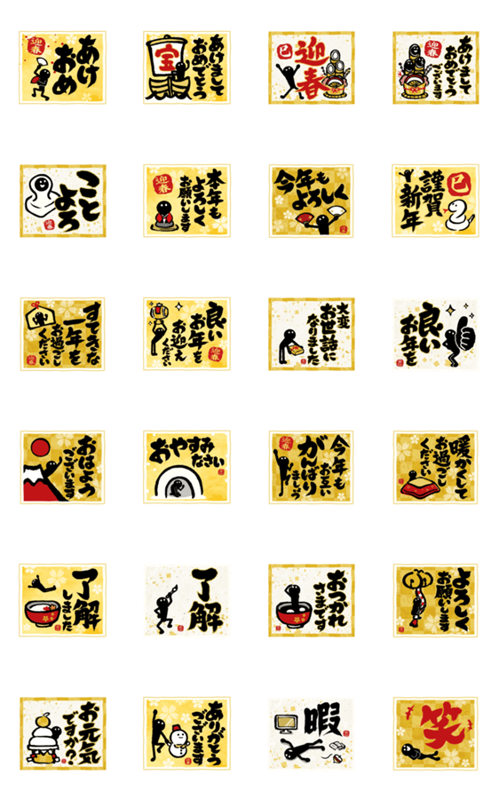 新年2025年アニメーションスタンプの年末年始バージョン!!日本の文化の「筆文字」で伝えよう!!墨と動く人が会話にインパクトを与えてくれるはず!!