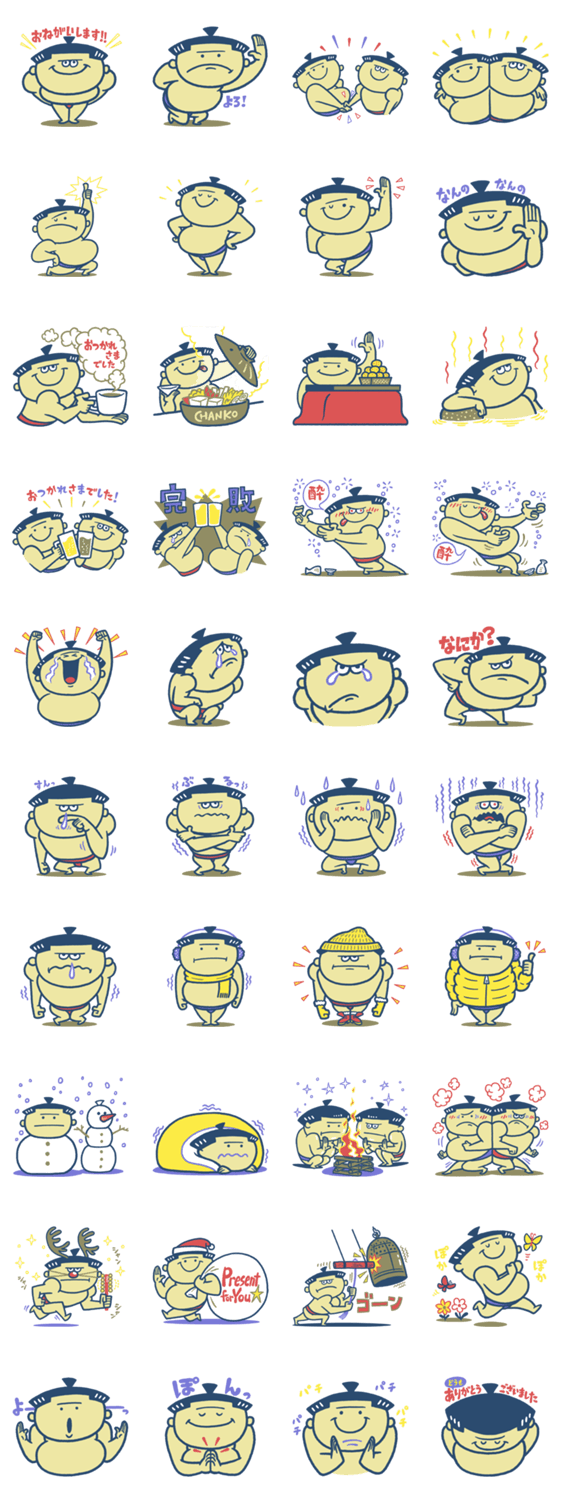 日常会話で一年中使える力士の相撲スタンプ!冬のおすもうさん〇