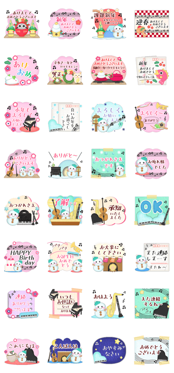 | スタンプ説明 | 年末年始の挨拶に使える冬の年賀スタンプ。お正月や大晦日に使いやすい。敬語/お正月/新年/年賀/あけましておめでとう/お大事に/年賀状/クリスマス/mamama-chin |