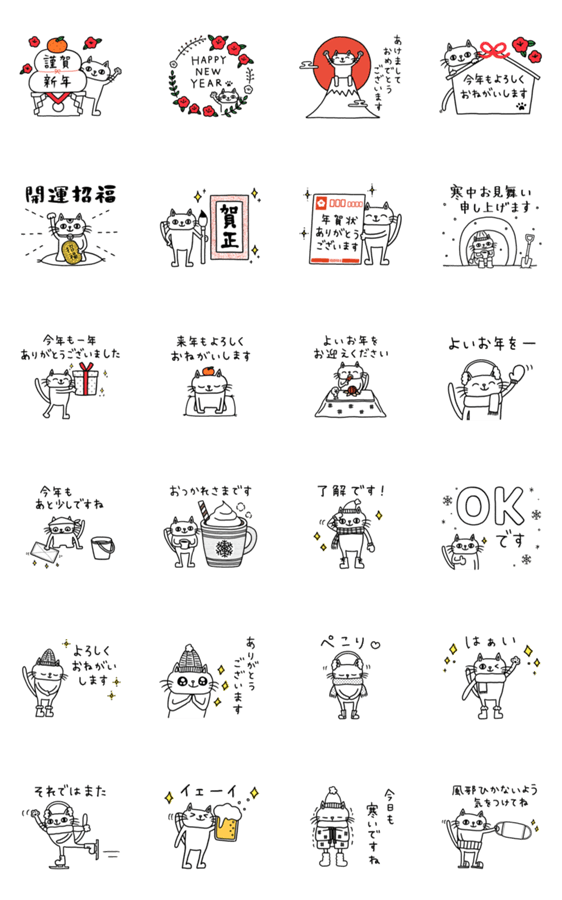 | スタンプ説明 | 冬と年末年始に使えるスタンプです♪ 敬語/ネコ/ねこ/毎年使える/大人/あけおめ/かわいい/気遣い/日常/挨拶/お正月/あいさつ(※期間限定だったスタンプの再販です) |