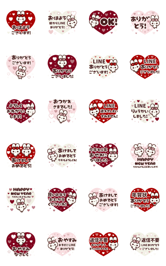 【⬛背景が動く年末年始✖毎年使える✖ハートの大人シンプルで控えめな挨拶や敬語の定番LINEスタンプ❤️⬛】【お正月】【年賀状】【ピョンピョンラビット】【©AIIAIIA】