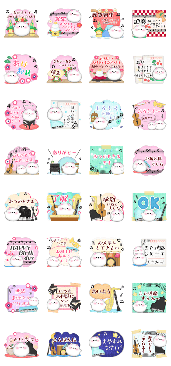 | スタンプ説明 | 【お正月】年末年始の挨拶に使える冬の年賀スタンプ。お正月や大晦日に使いやすい。ピアノ/音楽/敬語/お正月/新年/年賀/あけましておめでとう/お大事に/年賀状/mamama-chin |