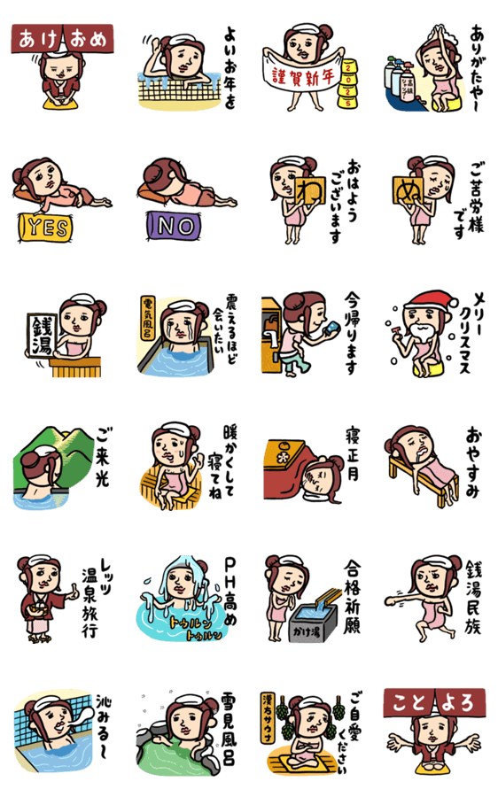 銭湯女子★年末年始2025 -LINEスタンプマニア