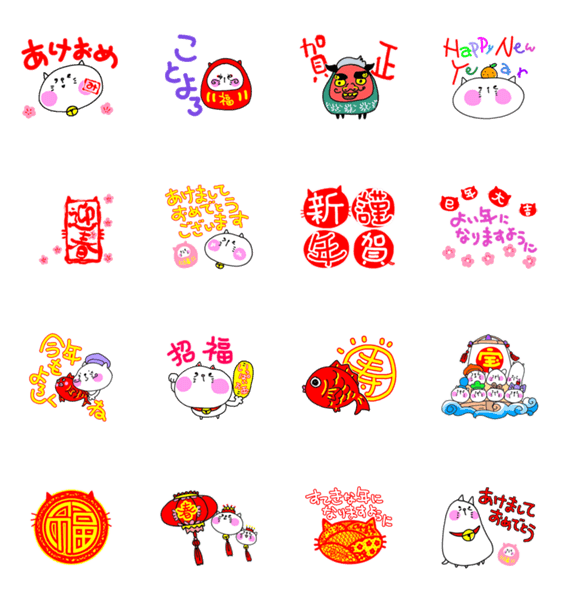 全部が新年のごあいさつに使えるヤンねこスタンプです。新年/年賀状/元旦/七福神