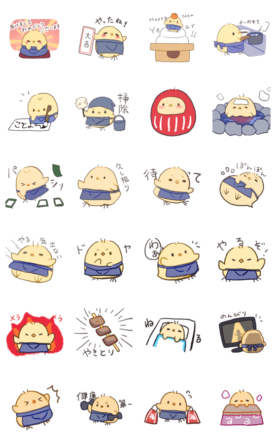 日常や年末年始のご挨拶に毎年使える!ちょっぴりシュールなひよこのスタンプです 大晦日/正月/あけおめ