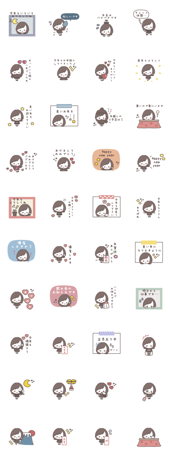 ゆるふわボブガール◎年末年始 #2025 -LINEスタンプマニア