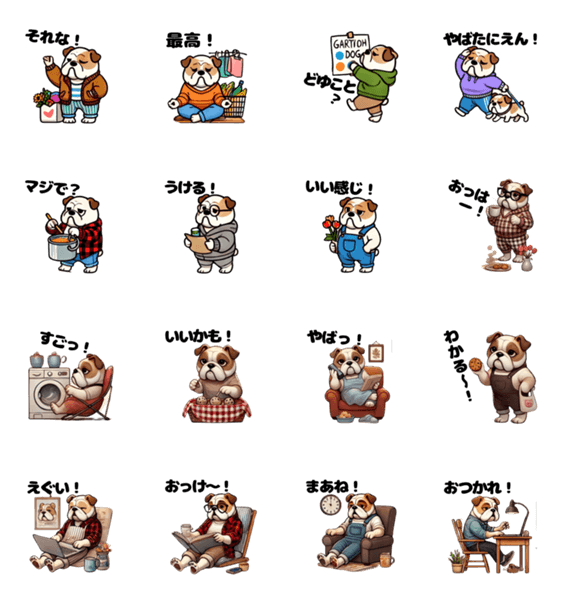 若者に人気の汎用フレーズをブルドッグがユーモラスにお届け!