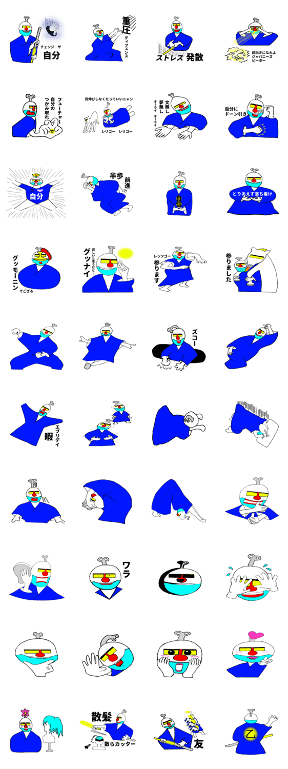 こんな時代だからこそ使える、侍と外国人に憧れるおじさんのスタンプです。