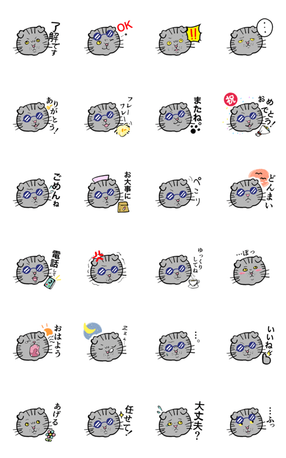グラサン猫のジュニアくんのスタンプです。ちょっぴりクールな猫。