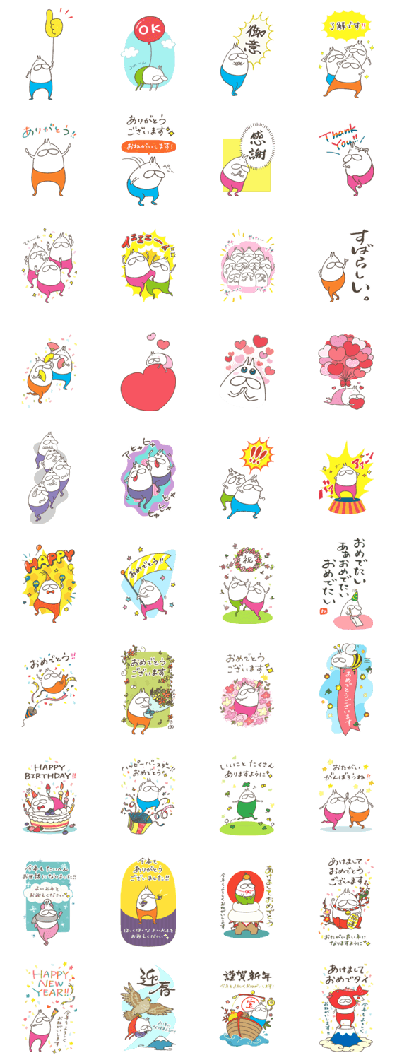 いろんなお祝いに使えるゴージャスでBIGなスタンプです。ねこタイツと一緒に盛大にお祝いしてトークも気分も盛り上げていきましょう。年末年始用あけおめスタンプつき。 ※このスタンプはトークルームで大きく表示されるBIGスタンプです。