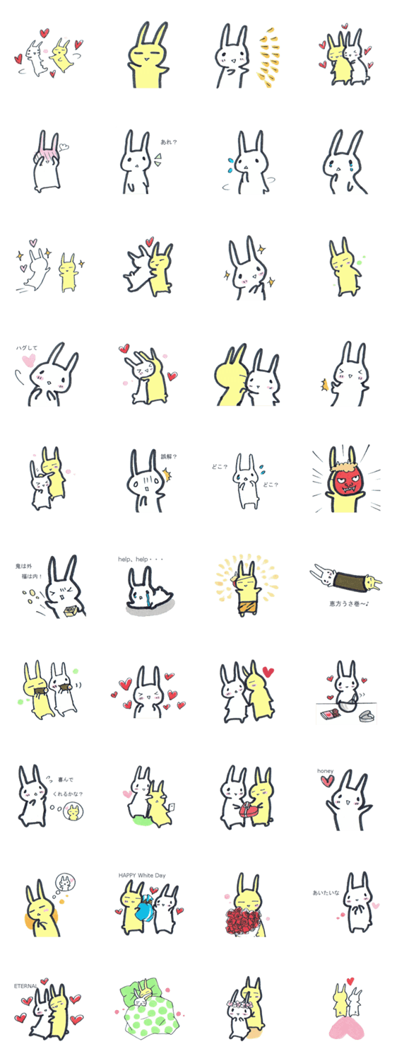 ラブラブな可愛いうさぎのスタンプです❤のろけ等にお使いください☆ヴァレンタイン等のイベントスタンプも入ってます!