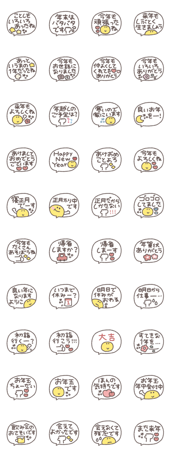 年末年始に1つあると便利な文字スタンプです。シンプル/かわいい/くっきり/見やすい/ゆる/大人可愛い/あいさつ/吹き出し/年末年始