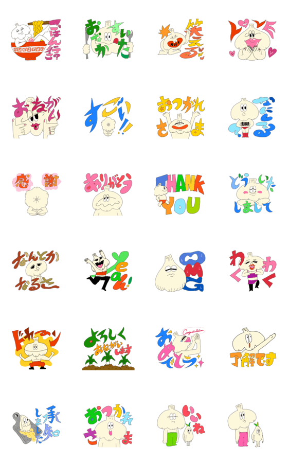 クスッと笑えるシュールでゆるいキャラのニンニク達。ニンニク/にんにく/ガーリック/garlic