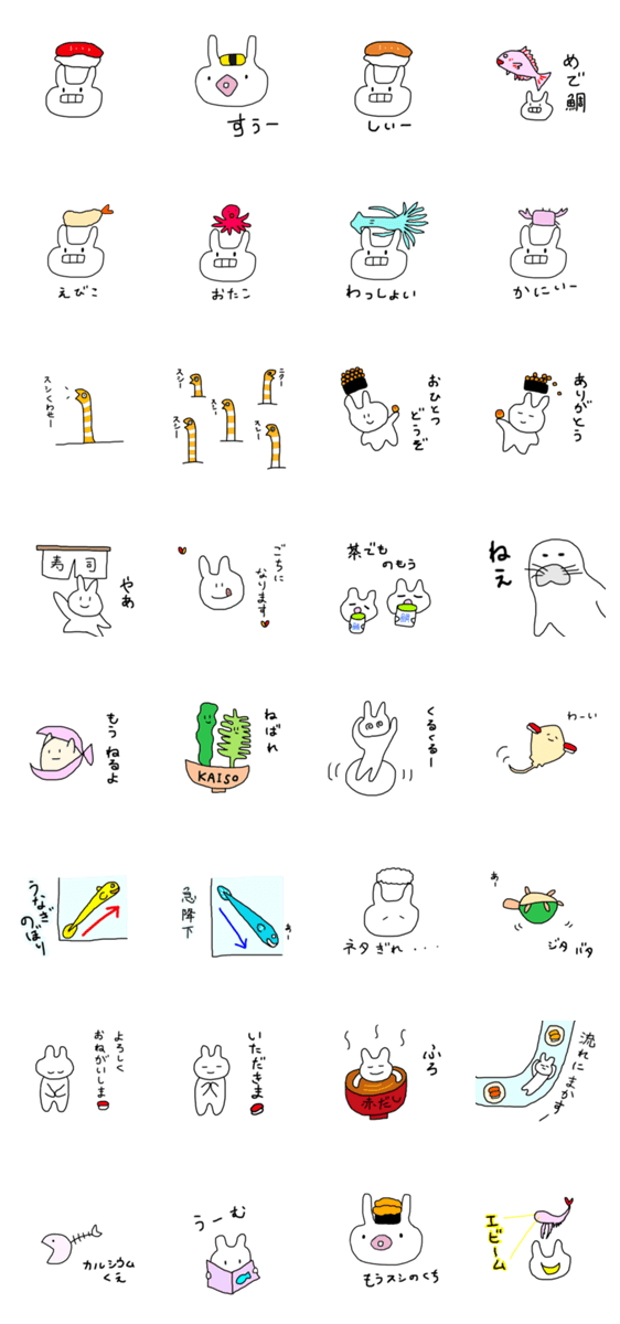 | スタンプ説明 | スシらぶ。スシ食べたい。スシ奢って。 こじろースタンプ第二弾!! |