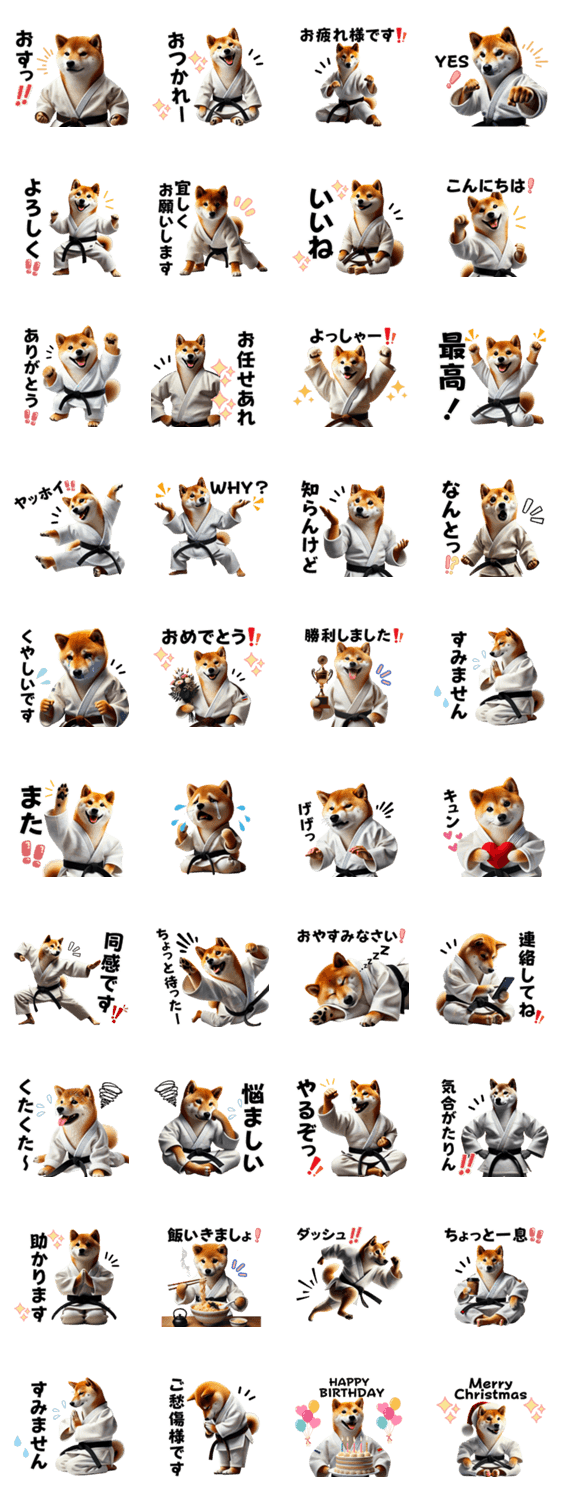 柔道が大好きな柴犬のスタンプです。柔道部/武道/黒帯/犬/シバ犬/しば/部活/大会/じゅうどう/日常会話