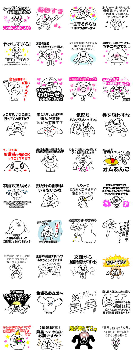 白ネコのあいうえお・・・ってるスタンプ
