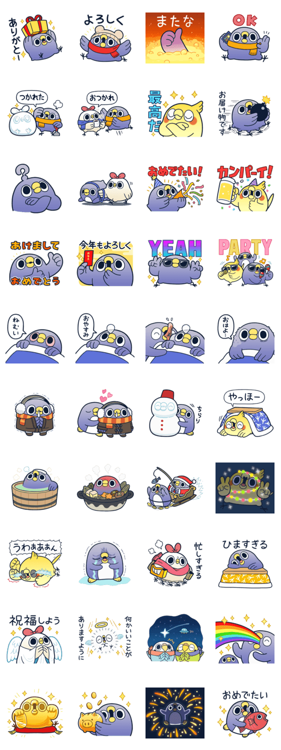 | スタンプ説明 | 「面倒だがトリあえず返信」でお馴染み、めんトリの新しい冬スタンプが登場!めんとりじゃないよ。 |