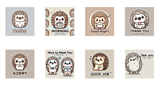 ハリネズミがあなたの日常を楽しく彩る、かわいい挨拶スタンプ。