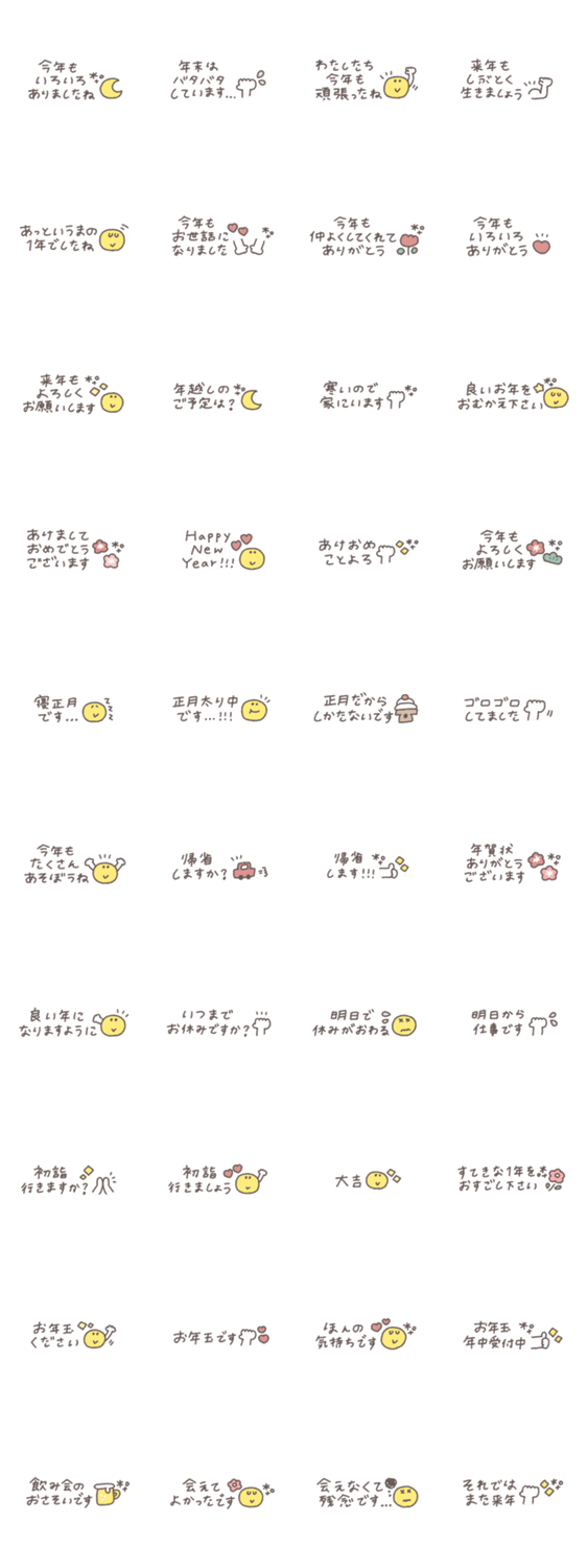 年末年始に一つあると便利なシンプルなあいさつスタンプです。 細字/シンプル/大人可愛い/あいさつ/スマイル/手書き/ベージュ/省スペース/年末年始